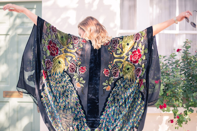 As soon as I bought this kimono me and Iona were really eager to shoot it, textures and vibrant colours always come out so well in the photos, they are also so fun to shoot. The kimono is a gorgeous velvet burnout with peacock feathers on, I love peacock feathers because it reminds me of my sternum tattoo you may have seen on my Instagram and the inspiration behind it. The Lace embroidered dress is from Free People (of course) I have worn it to a few festivals, it can be dressed up or down its beautiful. I've got lots of exciting content coming up for my blog, so keep following!